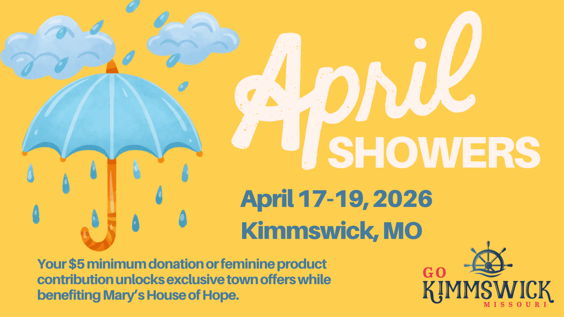 Join us in the heart of Kimmswick for a two-day event – Kimmswick’s April Showers. This special event is not just about celebrating the spring season; it’s a powerful movement towards making a difference in the lives of those who have endured too much rain in their lives.